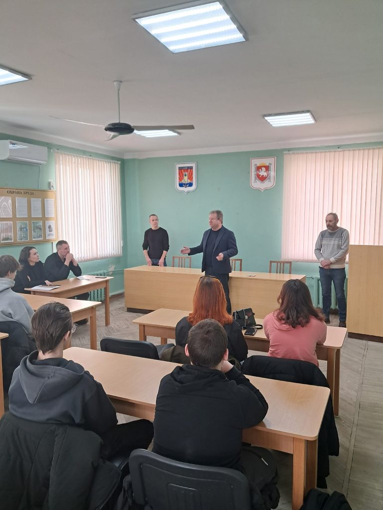 Со студентами ГБПОУ РК «Феодосийского техникума строительства и курортного сервиса» сотрудниками ГУП РК «Крымтеплокоммунэнерго» была проведена познавательная беседа, о работе электрогазосварщика, его ценном и незаменимом труде в жизни предприятия. В ходе встречи , будущим сварщикам было показано рабочее место, оборудование сотрудников филиала ремонтного участка.