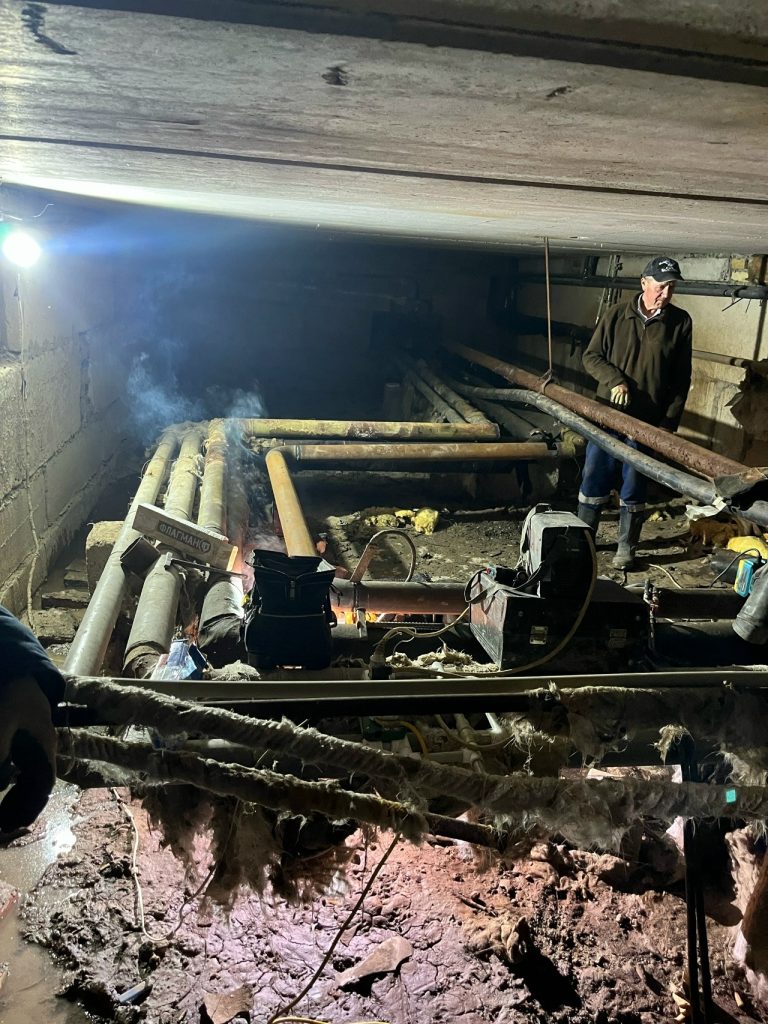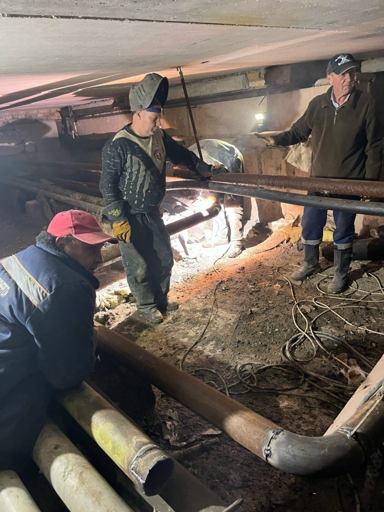 Сотрудники ГУП РК «Крымтеплокоммунэнерго» ремонтируют транзитный трубопровод ДУ 100 мм в подвале дома и теплотрассу ДУ 50 мм в переулке Совхозный, 5 в г. Симферополь.