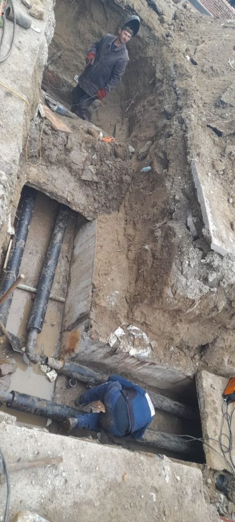 Сотрудники ГУП РК «Крымтеплокоммунэнерго» ремонтируют теплотрассу ДУ 89 мм в пгт Щелкино.