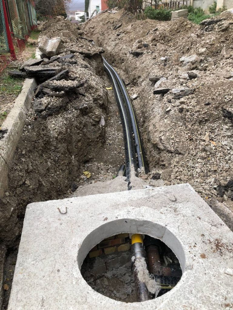 Сотрудники ГУП РК «Крымтеплокоммунэнерго» производят замену участка тепловой сети ДУ 110 с установкой тепловой камеры по адресу с. Нижняя Кутузовка, ул. Центральная р-он 3 дома.