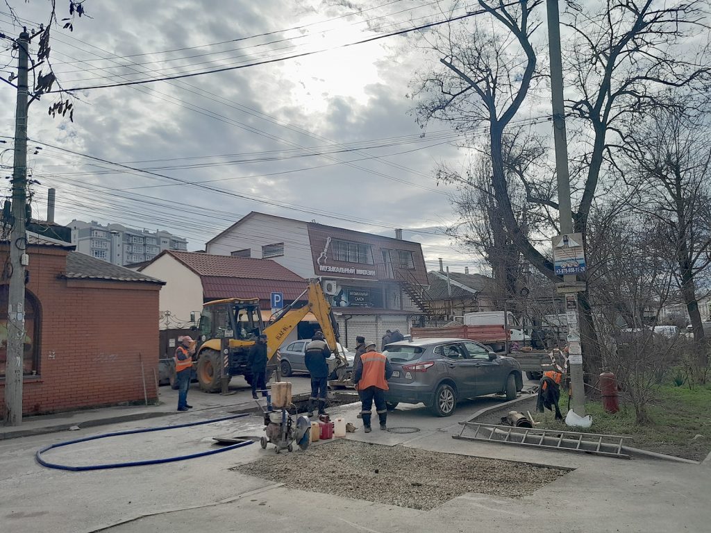Сотрудники ГУП РК «Крымтеплокоммунэнерго» ремонтируют теплотрассу на ул. Проездной, 1\3 в г. Симферополь.