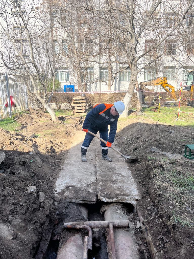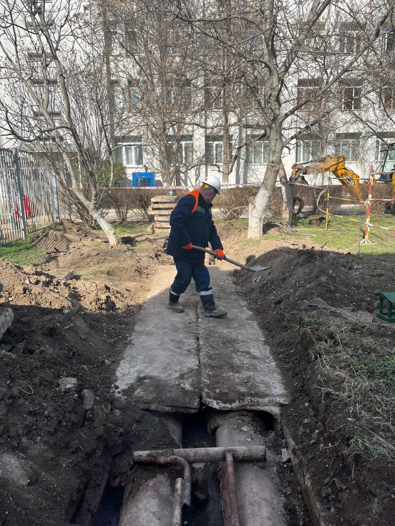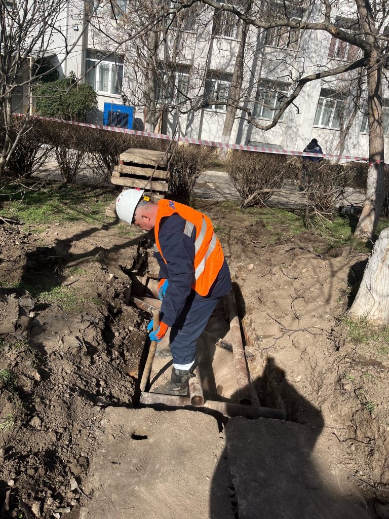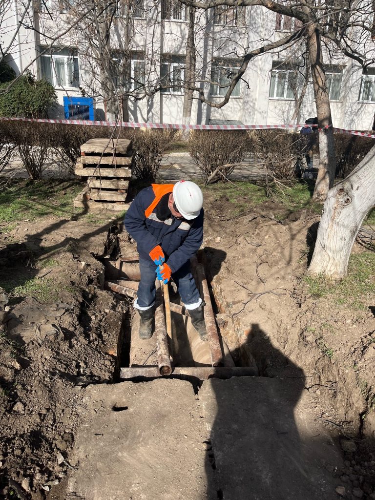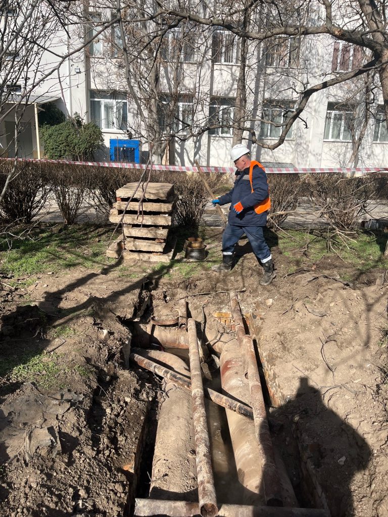Сотрудники ГУП РК «Крымтеплокоммунэнерго» ремонтируют теплотрассу ДУ 159 мм на ул. Бела Куна, 5 в г. Симферополь.