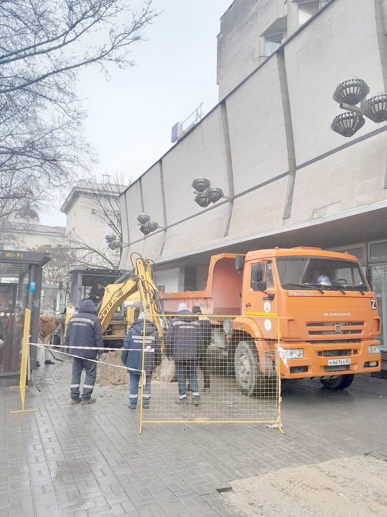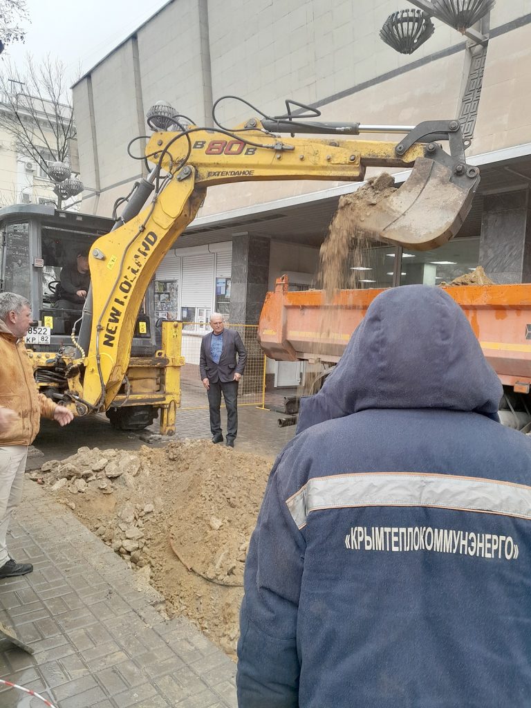 Сотрудники ГУП РК «Крымтеплокоммунэнерго» ремонтируют теплотрассу ДУ 75 мм на ул. Александра Невского, 1 в г. Симферополь.