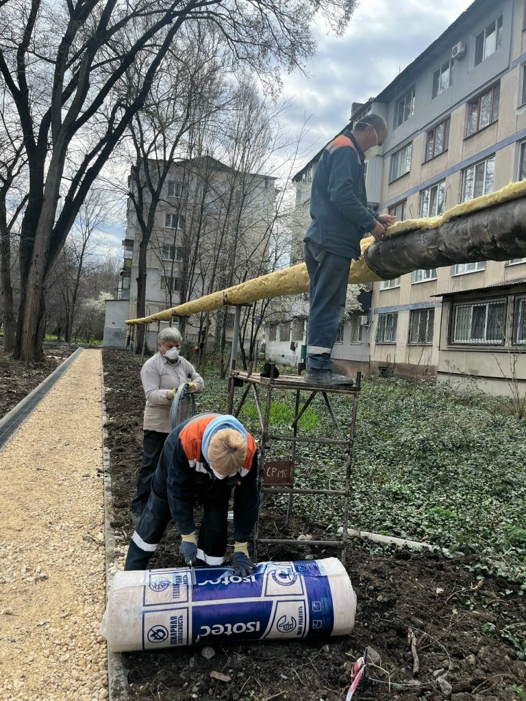 Сотрудники ГУП РК «Крымтеплокоммунэнерго» ремонтируют теплотрассу ДУ 159 мм на ул. Беспалова, 39 в г. Симферополь.