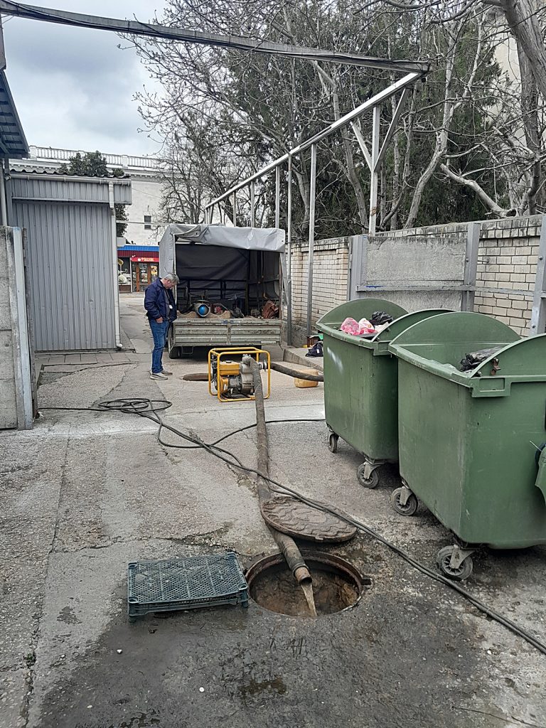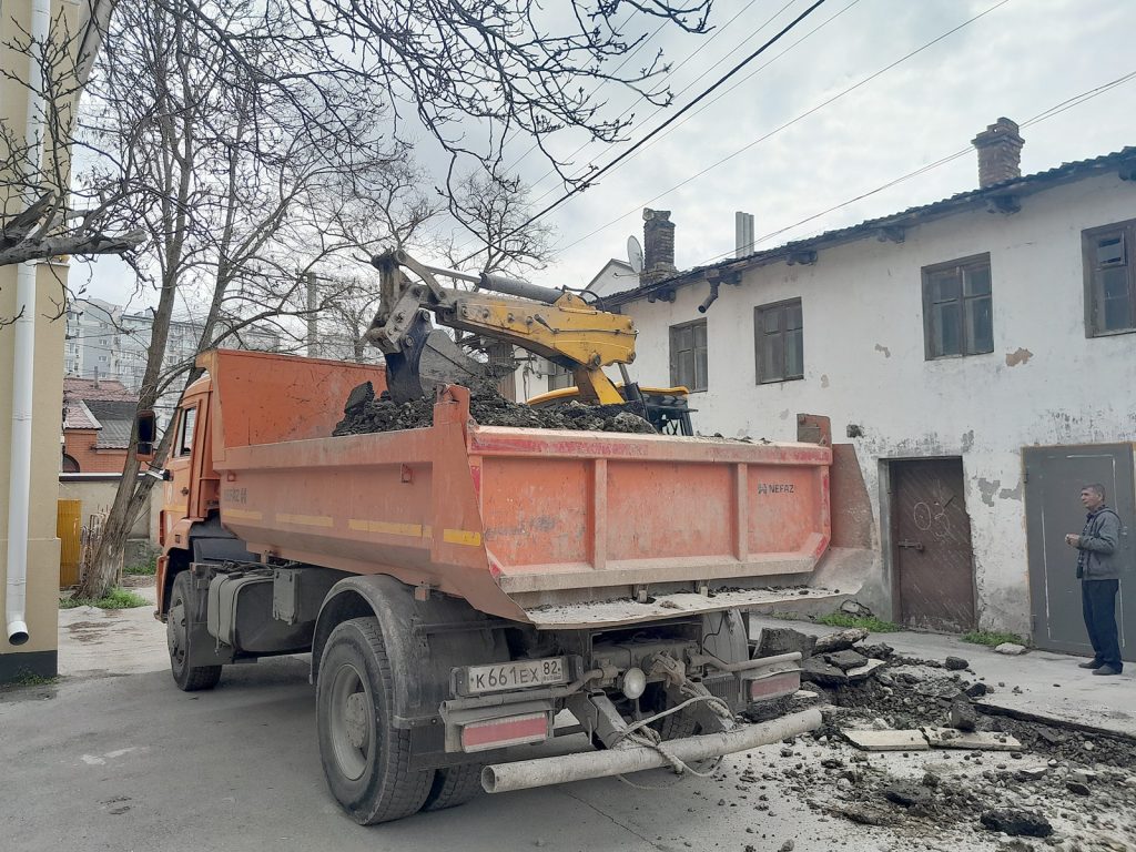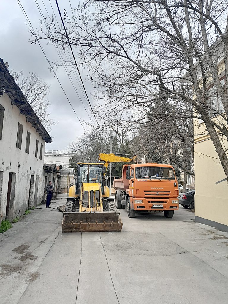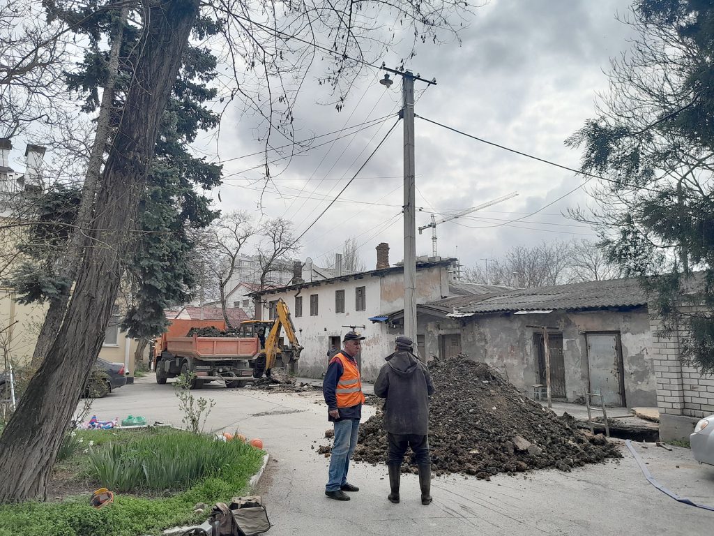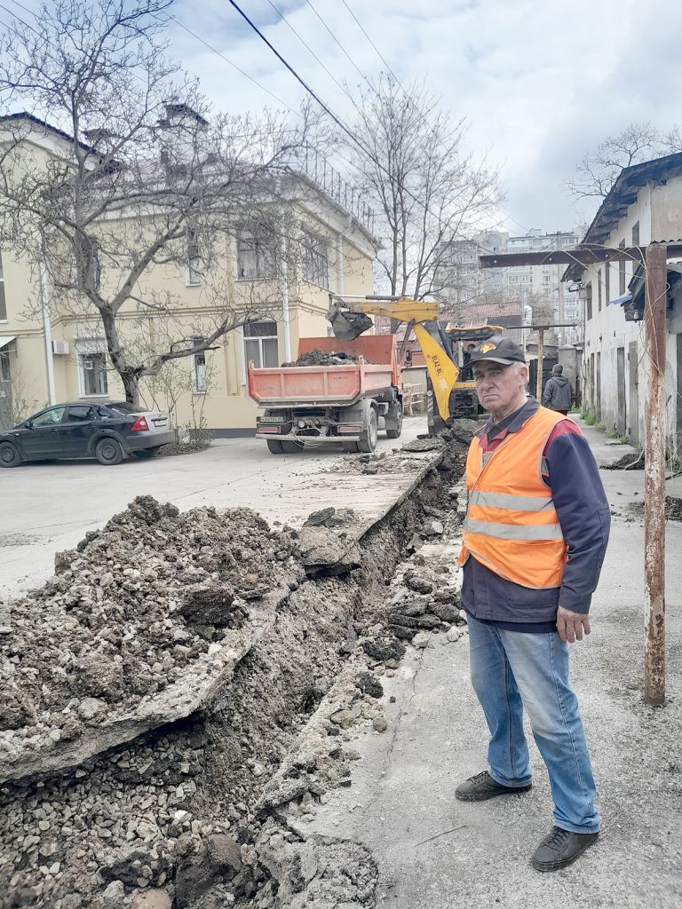Сотрудники ГУП РК «Крымтеплокоммунэнерго» ремонтируют теплотрассу на ул. Проездная, 1 в г. Симферополь. Меняют металлические трубы на пластиковые ДУ 110 мм.