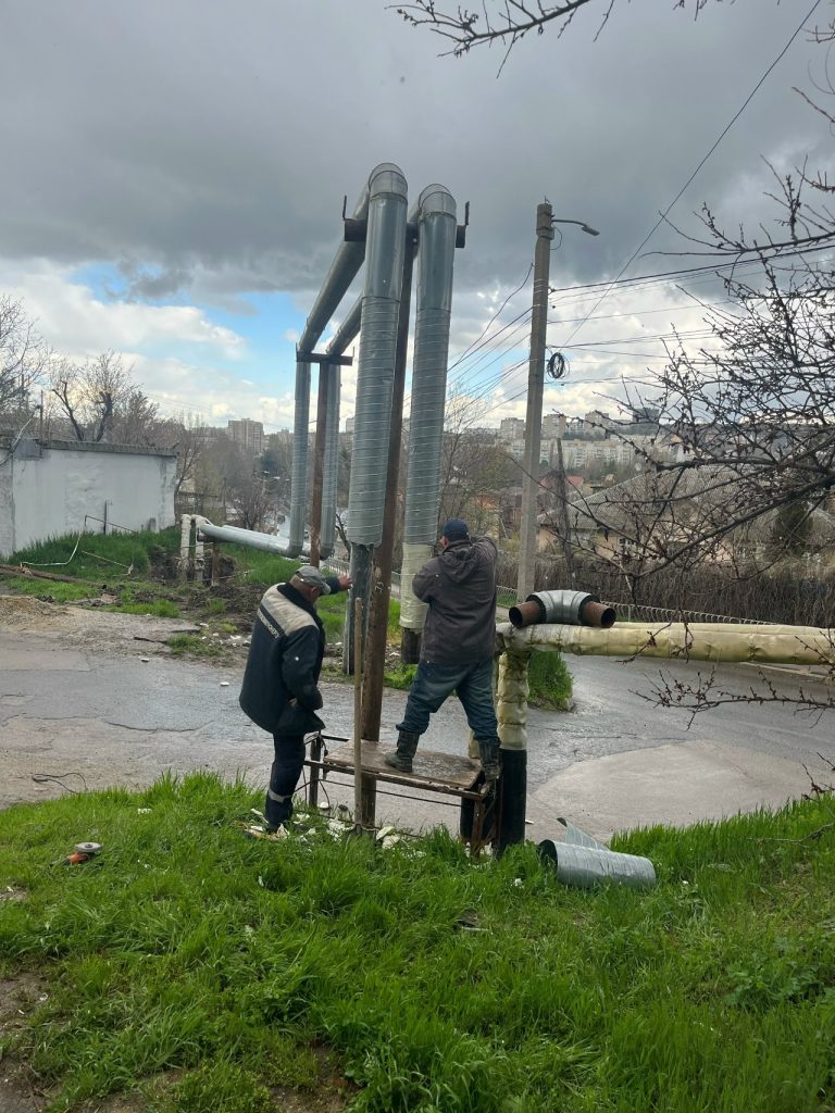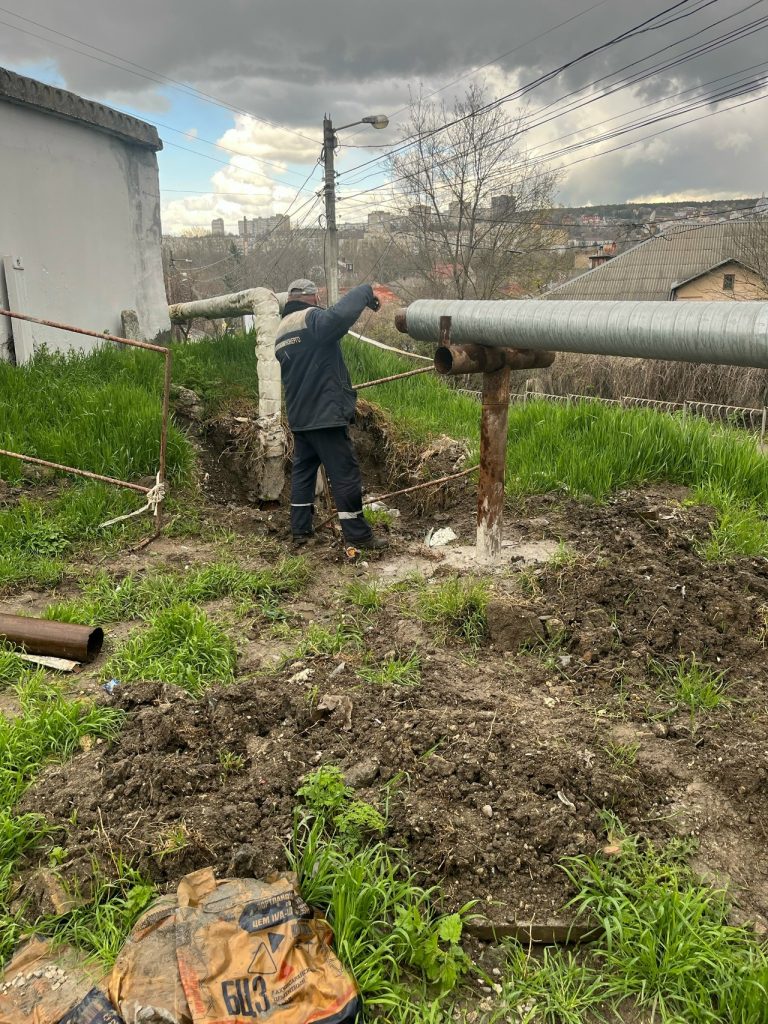 Сотрудники ГУП РК «Крымтеплокоммунэнерго» ремонтируют теплотрассу ДУ 159 мм на ул. Беспалова, 7-а в г. Симферополь.