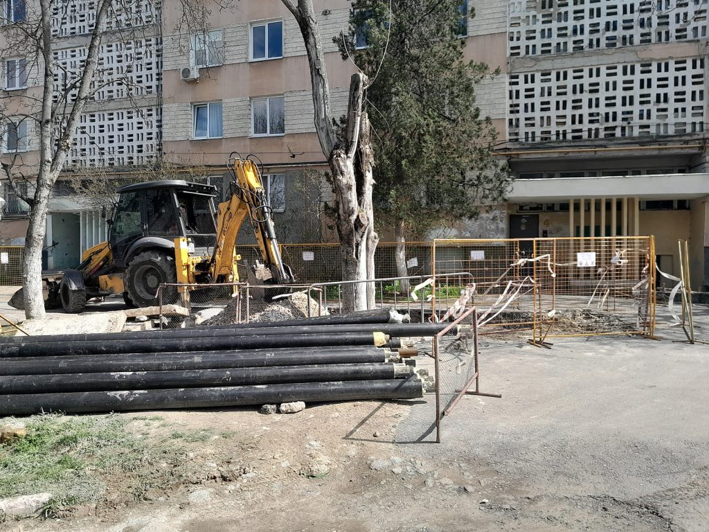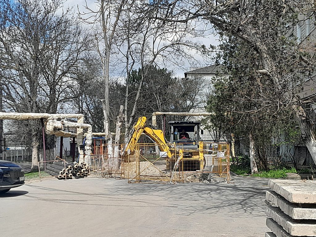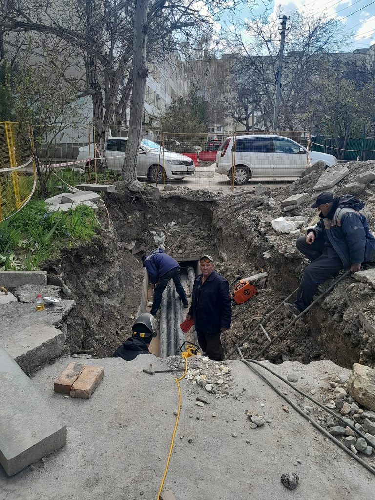Сотрудники ГУП РК «Крымтеплокоммунэнерго» ремонтируют теплотрассу ДУ 89 мм на ул. 60 лет октября, 9-11 в г. Симферополь.